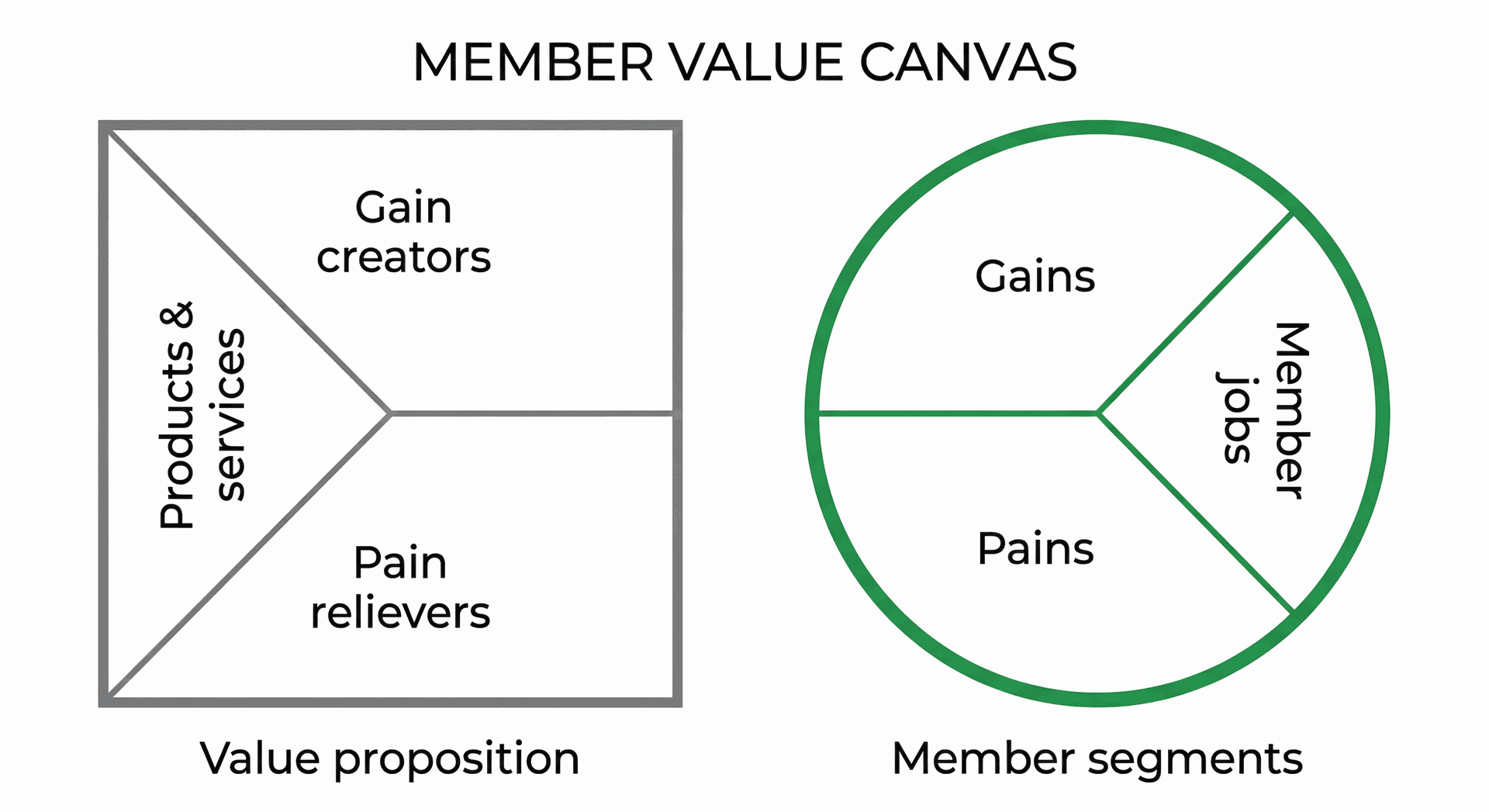 Das Member Value Canvas für Mitglieder bedeutet, dass der Fokus darauf liegt, Dienstleistungen oder Angebote so zu gestalten, dass sie den Bedürfnissen und Erwartungen der Mitglieder optimal entsprechen. Die Grundidee ist, einen klaren Mehrwert für die Mitglieder zu schaffen, indem ihre spezifischen Herausforderungen und Wünsche im Zentrum stehen. Dazu gibt es sechs Schritte, aufgeteilt in zwei zentrale Bereiche: